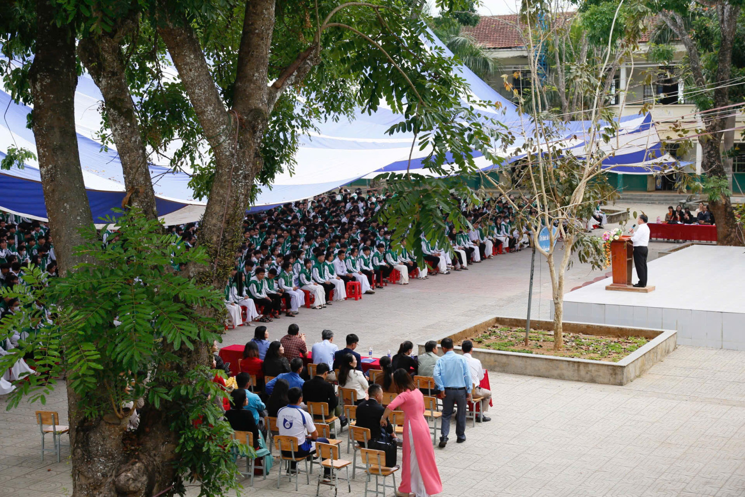 Tham dự chương trình có đại diện lãnh đạo địa phương: Đồng chí Nguyễn Đình Bình – Bí thư Đảng uỷ, Chủ tịch Hội đồng nhân dân xã; đồng chí Nguyễn Thị Duyên – Phó bí thư thường trực Đảng uỷ; đồng chí Hồng Việt Trung – Phó bí thư Đảng uỷ, Chủ tịch Uỷ ban nhân dân xã; đồng chí Nguyễn Tấn Minh – Uỷ viên Ban chấp hành Đảng bộ xã, Trưởng Phòng Văn hoá- Xã hội; cùng Ban đại diện cha mẹ học sinh, Ban Giám hiệu và toàn thể cán bộ, giáo viên, nhân viên và hơn 1000 học sinh nhà trường.